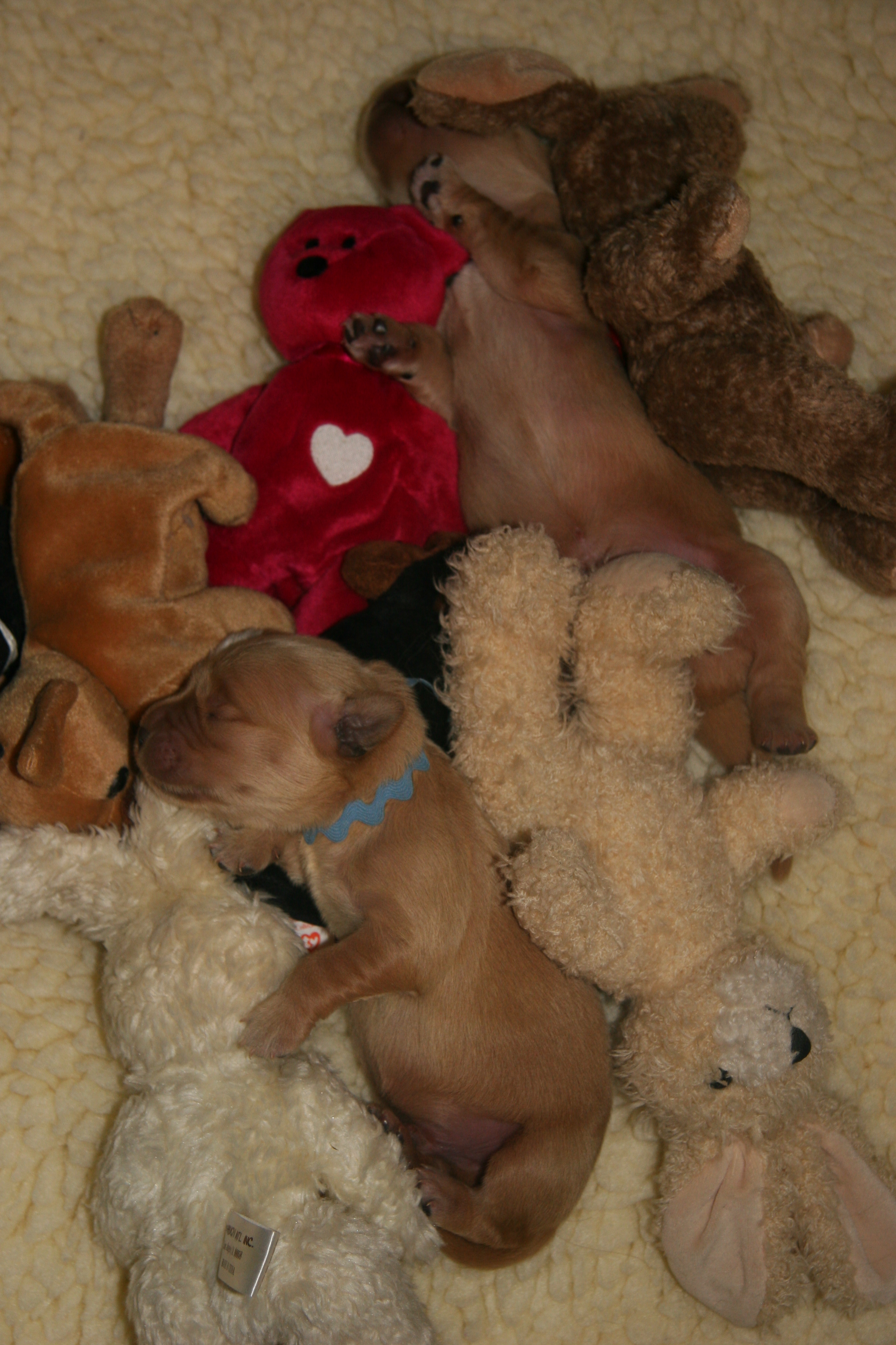 We added some toys to the whelping box to give the boys something to pile on and to give Annie a whole litter!