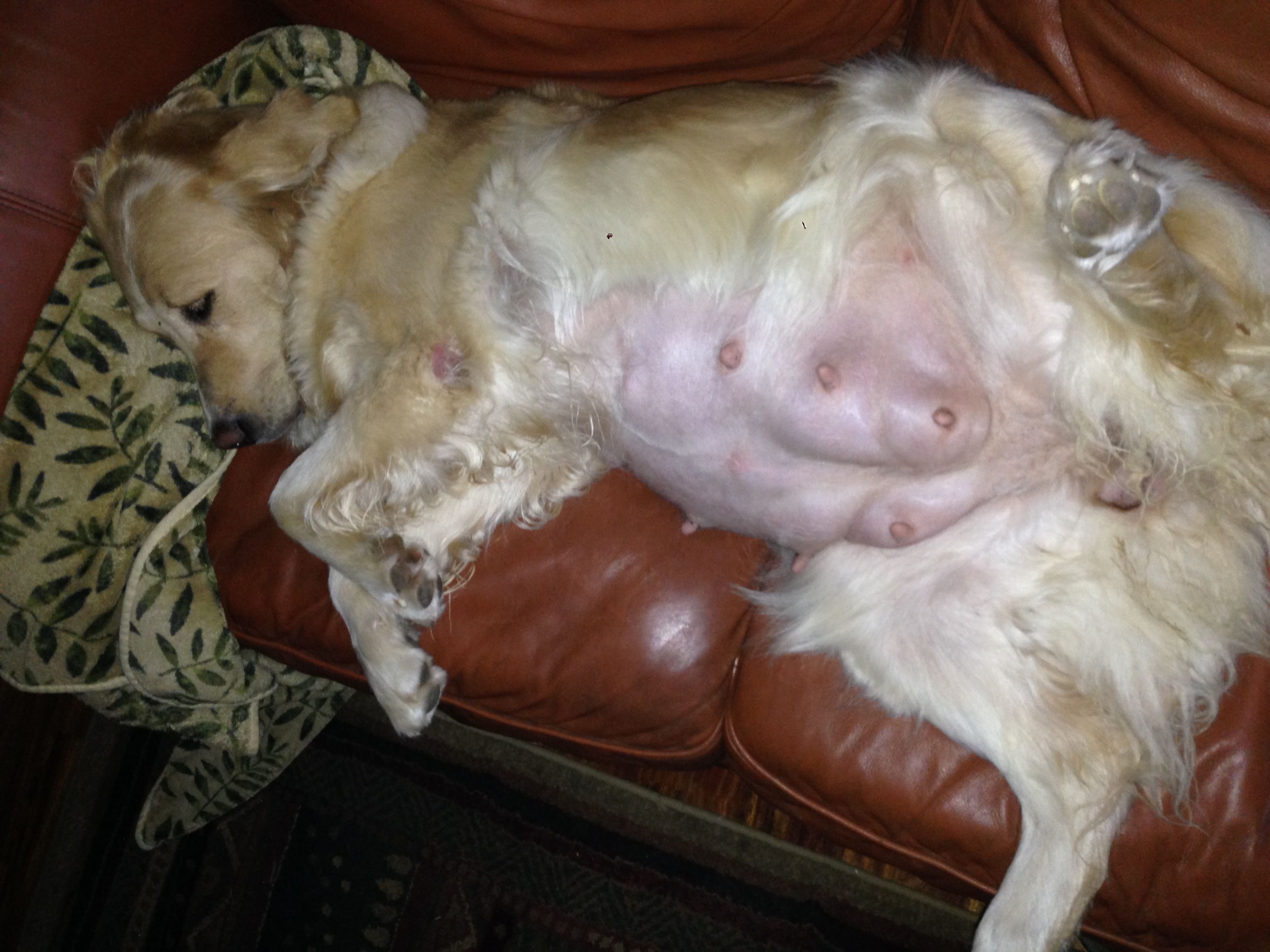 Does this couch make my belly look big? Kimber has a week to go, puppies due September 16, 2014. Don’t let this nap fool you, she is still chasing the quail out of the yard every morning and feels great! See Golden Retriever Litters page for information on this exciting litter.