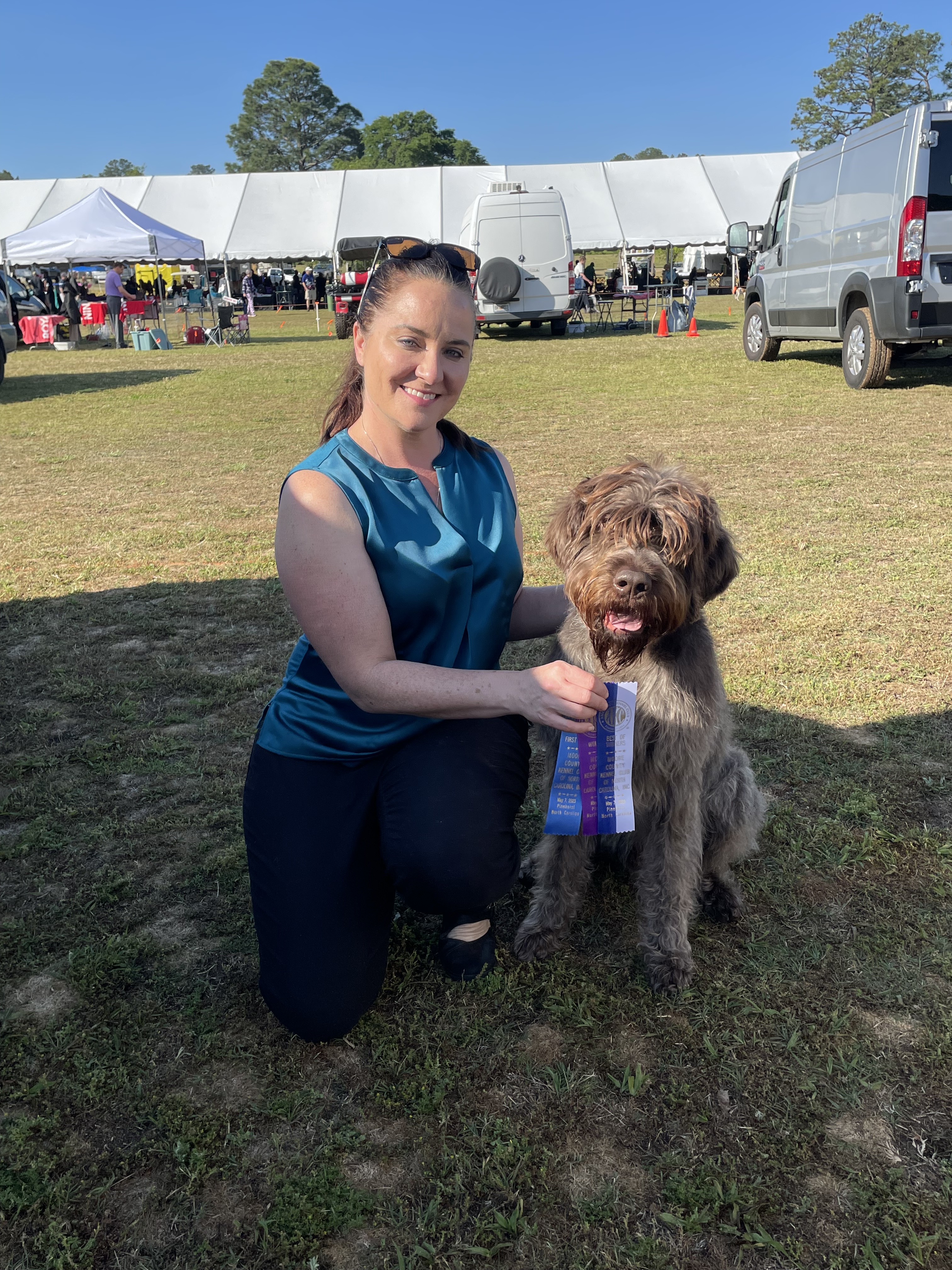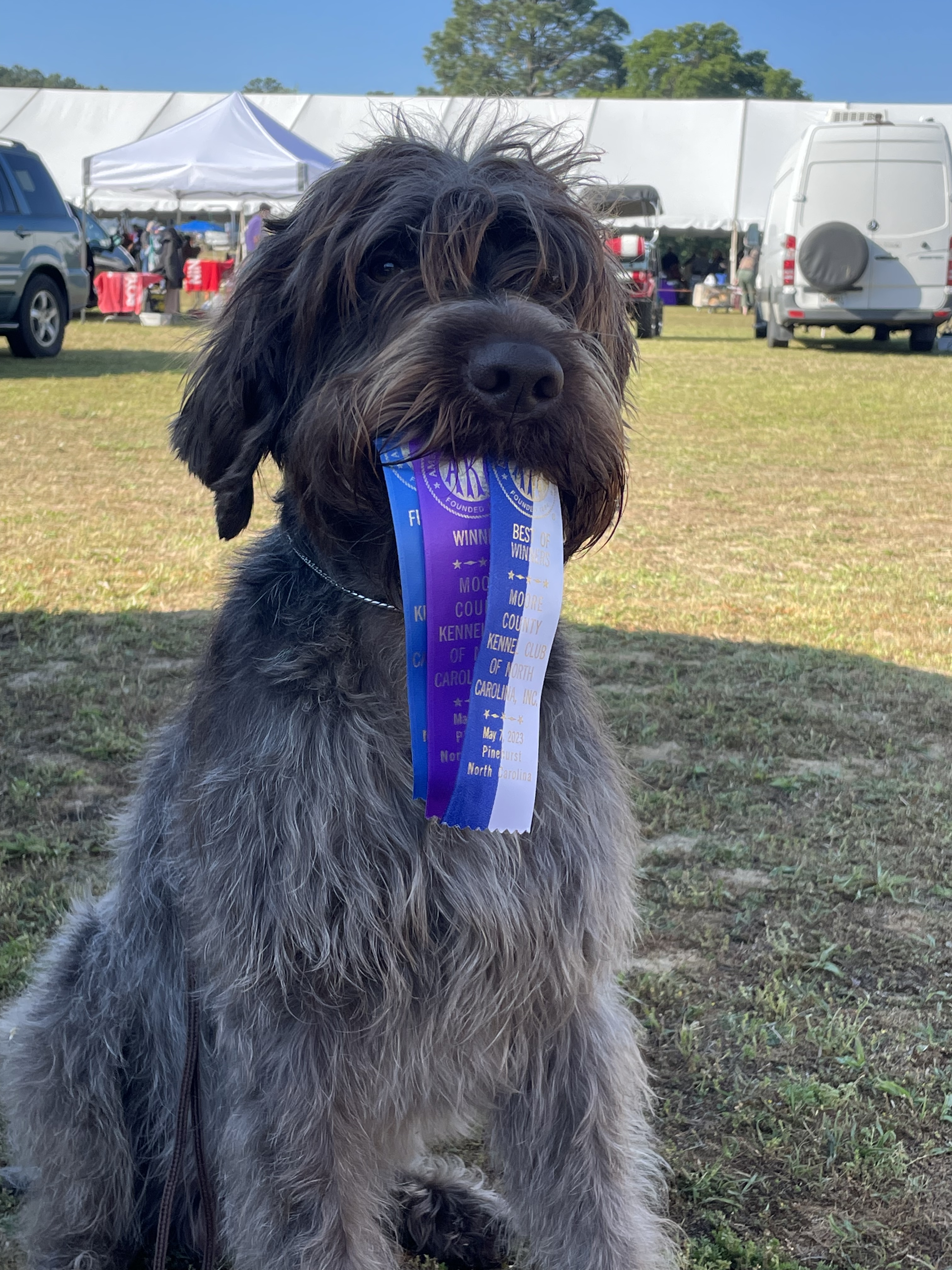 Congratulations to owner Amy Hagy, and her beautiful and talented Otis on their first AKC point earned by going Winners Dog and best of Winners at the Moore County KC dog show. Otis is owner trained and handled in all his activities!