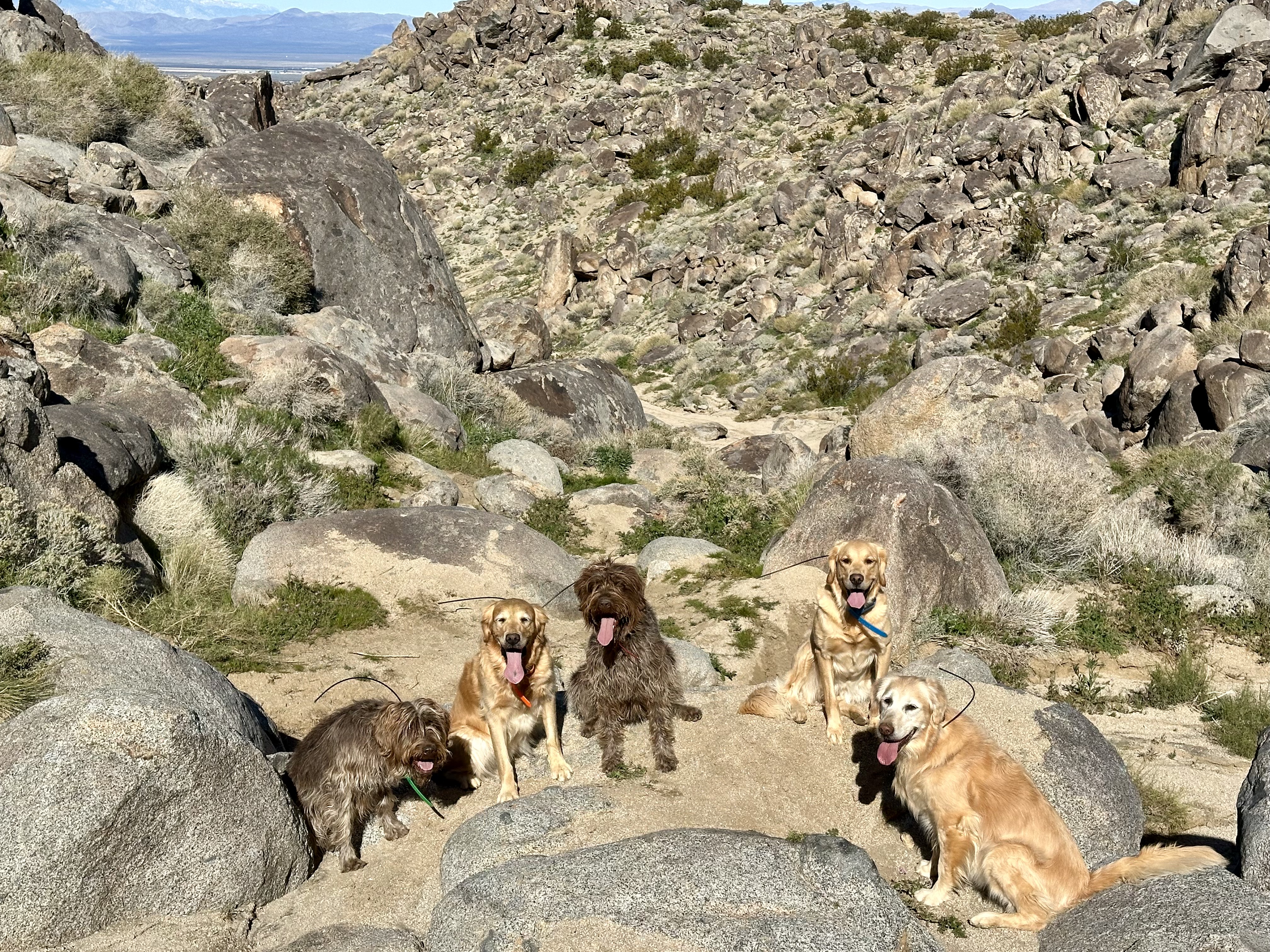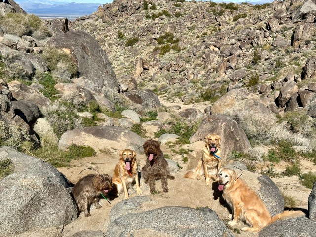 Break from watching puppies to take Cutter, Loki, Madi, Bryn and Lyric for a hike.
