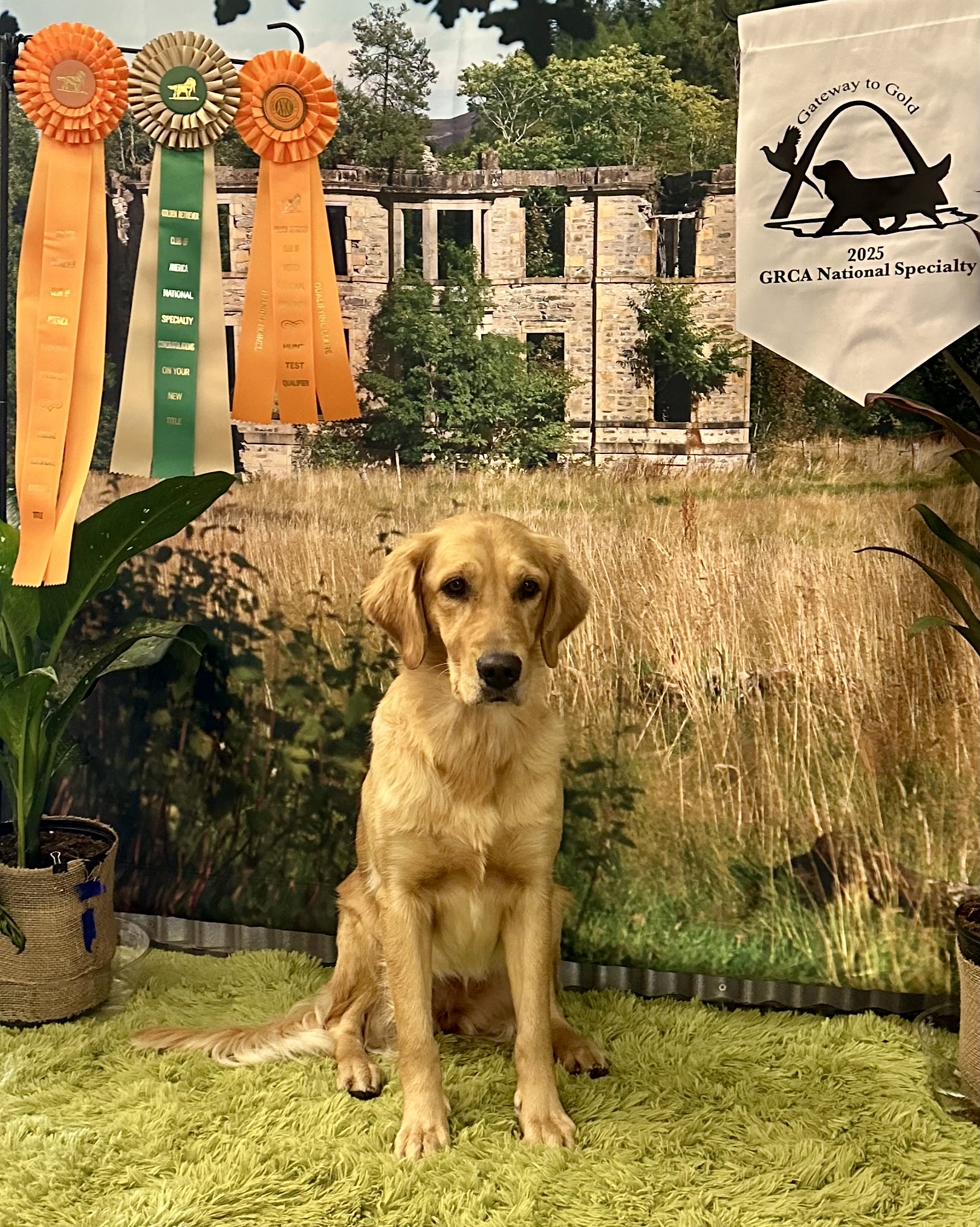 Rory GRCA National Specialty 2025, St Louis MO. Completion of Senior Hunter title, WCX title.