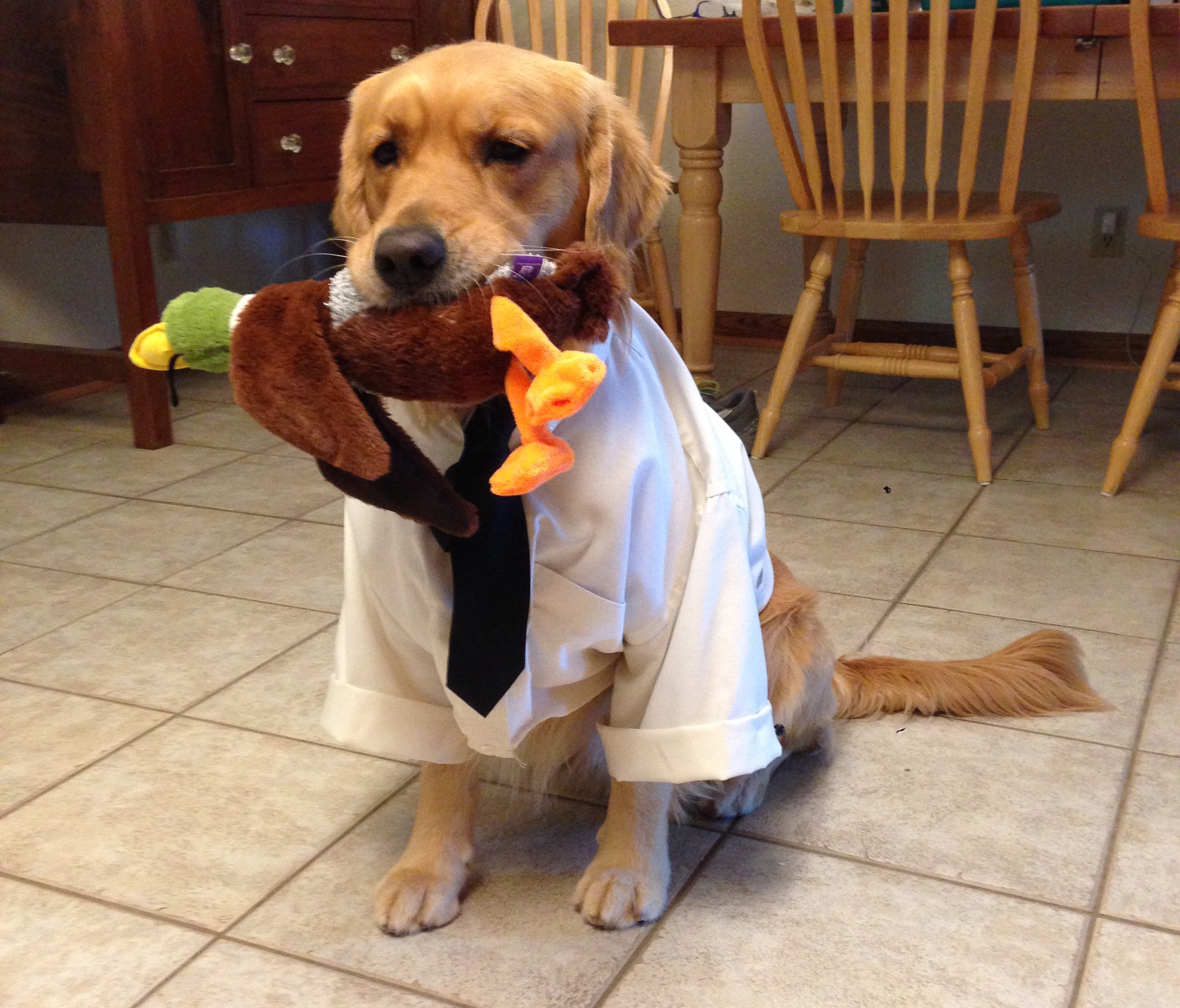 5-31-14 Willie is ring bearer for friends Vic and Danielle Esnard’s wedding. He did a great job including an off leash recall up the aisle, past all the flower pots and goose decoys and through the seated guests! Good job Willie!