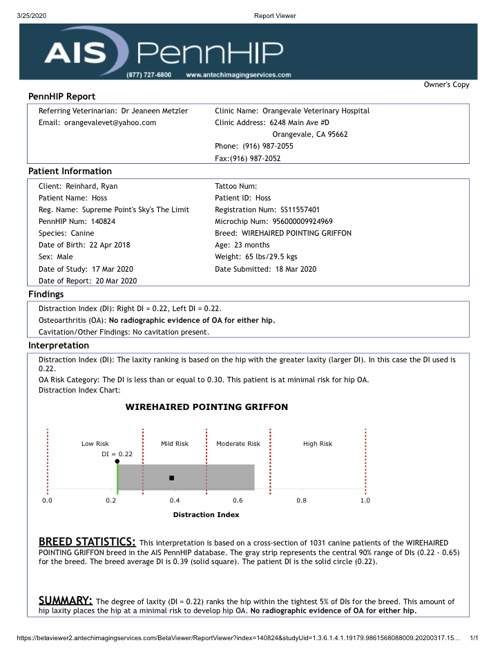 Hoss’s OFA clearances (note elbows pending final OFA confirmation)